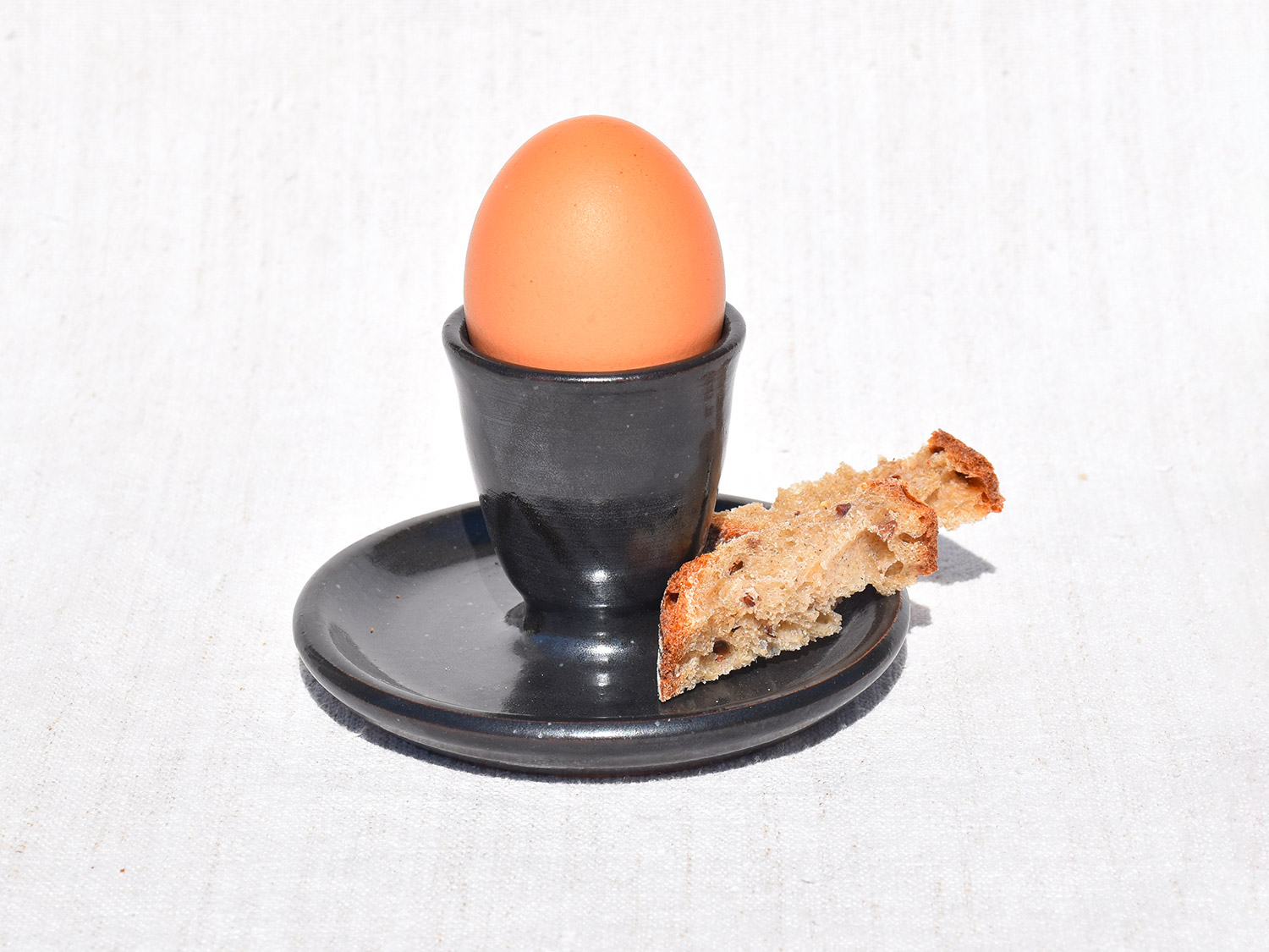 Coquetier et coupelle en grès, émaillage noir (gris anthracite)